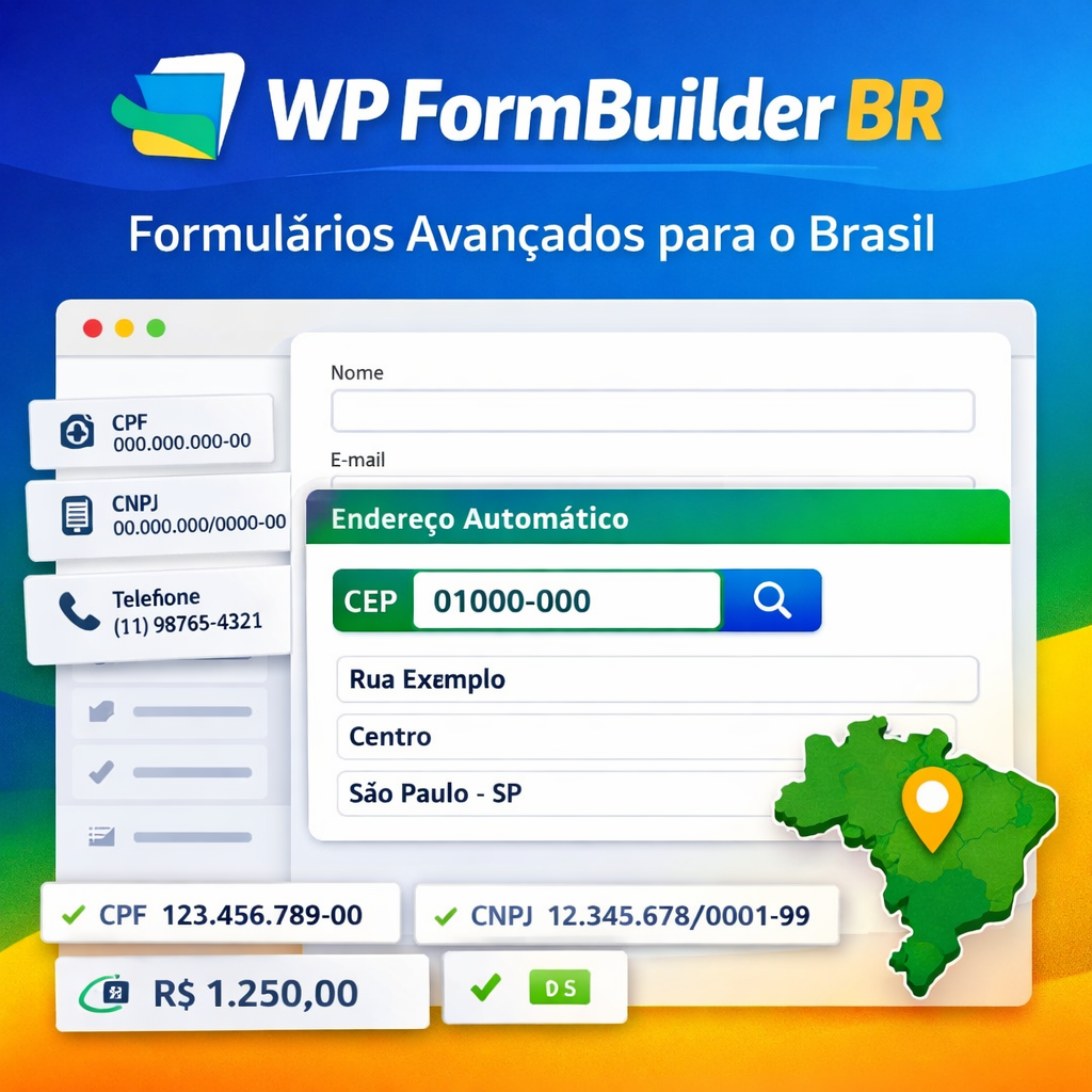O WP FormBuilder BR é um plugin WordPress completo e moderno para criação de formulários personalizados através de um construtor visual com arrasta e solta (Drag & Drop), desenvolvido especialmente para atender às necessidades do mercado brasileiro.